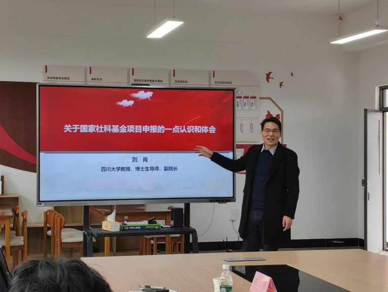 刘肖教授在国家社科基金项目申报领域具有丰富的经验和卓越的学术影响力。作为四川省“中国近现代史纲要”教学指导委员会副主任委员、国家社科基金项目通讯评委、四川省哲学社会科学基金项目评审专家,以及四川省委宣讲团成员和四川大学宣讲团成员,刘教授对于国家社科基金项目申报工作的基本认识与主要经验有着深刻的理解和独到的见解,此次讲座旨在为学院师生提供国家社科基金项目申报的指导与经验分享。