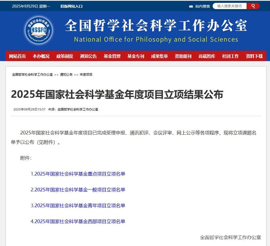 9月29日,全国哲学社会科学工作办公室公布了2025年度国家社会科学基金年度项目立项结果,香蕉视频