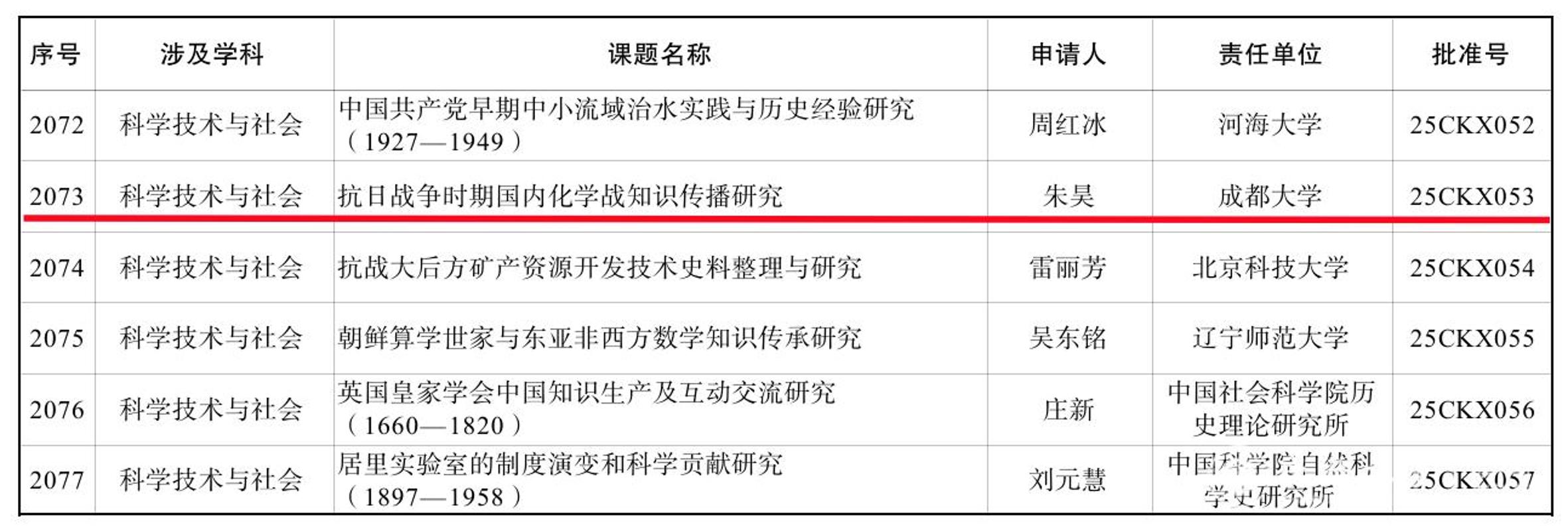 国家社科基金项目是我国哲学社会科学领域层次最高、权威性最强的科研项目,是衡量高校学术科研能力和水平的重要标志。今年,国家社科基金首次增设“科学技术与社会”和“古典学”两个大类学科,朱昊博士长期从事中国近现代科技史,特别是抗战科技史的研究,凭借多学科背景下扎实的研究基础从中脱颖而出获得立项。