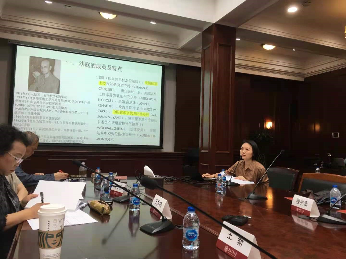 教师张素萍博士就其参会论文《丸之内战犯审判法庭的构成及特点》对丸之内法庭的特点进行了详细报告。作为国内首位对丸子内战犯审判法庭进行学术研究的论文,该报告引起与会专家的兴趣和关注,并对其研究成果给予肯定。