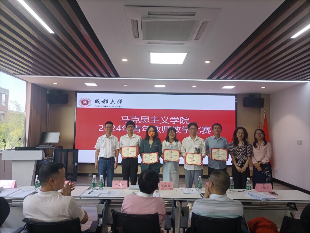 本次比赛根据专家评委们的打分,共评选出一等奖1名,二等奖2名,三等奖5名。其中一等奖的获得者是张力老师,二等奖的获得者是杨礼、漆俊老师,三等奖的获得者是张素萍、丁怡舟、杨运筹、许龙波、王璐老师,专家评委们分别为他们颁发了荣誉证书。其中一、二等奖获得者张力、杨礼和漆俊老师将参加2024年成都市大中小学思政课教师教学技能大赛。