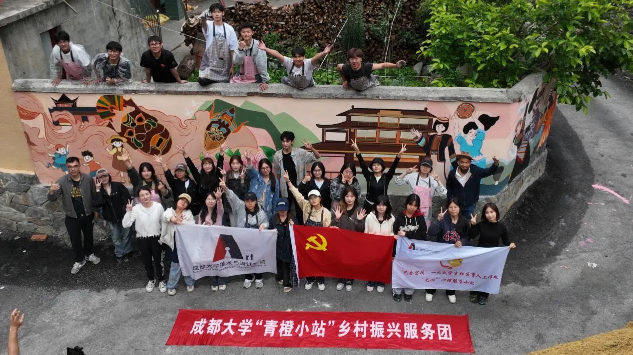 这次任务的高效开展,离不开村民的支持,更离不开双河村“两委”、驻村工作队以及在村投资公司的通力协作。他们从师生的食宿供应、工具配备、安全保障等方面进行全面保障,确保了墙绘活动在不良天气下能够顺利完成,并在有限的时间内达到最好的效果。围绕服务乡村振兴战略规划,双河村生态文明建设得到进一步提升,实现了双河村“颜值”与“内涵”的双重提升。成大学子也借此机会,运用自己的绘画和设计技能,在团队协作沟通中将所学知识应用于实践创作。艺术不只为乡村赋能,同样也在为团队成员自身赋能。