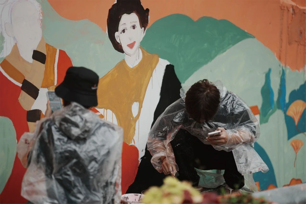 实践队成员仔细进行墙绘调色。成员帮助其他成员对墙绘所需要的颜色进行调色,分工明确,不仅使团队工作效率大大提升,更体现了团队合作精神的力量。