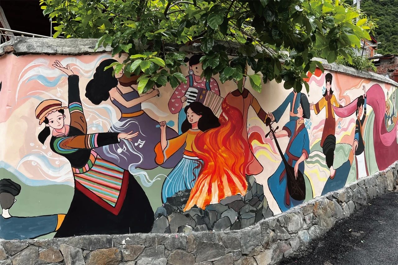 中国-东盟艺术学院美术与设计学院组织二十余名学生,来到四川省阿坝藏族羌族自治州九寨沟县南坪镇双河村,开展“文化赋能乡村,艺术振兴蓝图”暑期社会实践活动。通过墙绘的方式将将历史文化、地方特色、乡村风貌进行融合,使墙面成为连接过去与现在、乡村与文化的桥梁。
