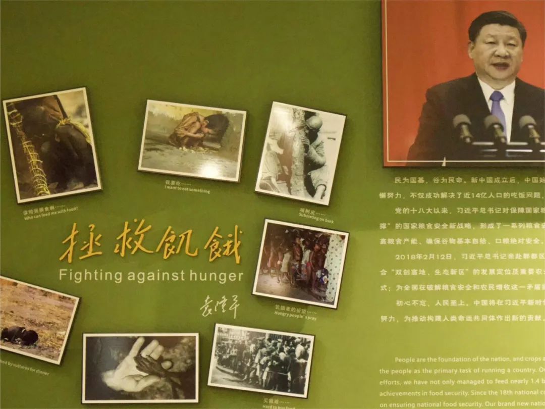 图为科技馆内展示的历史上因粮食问题产生的种种悲剧。历史上由于粮食缺乏而造成了种种社会悲剧,人们吃不饱饭,只能饥饿度日,等待生命的终结。