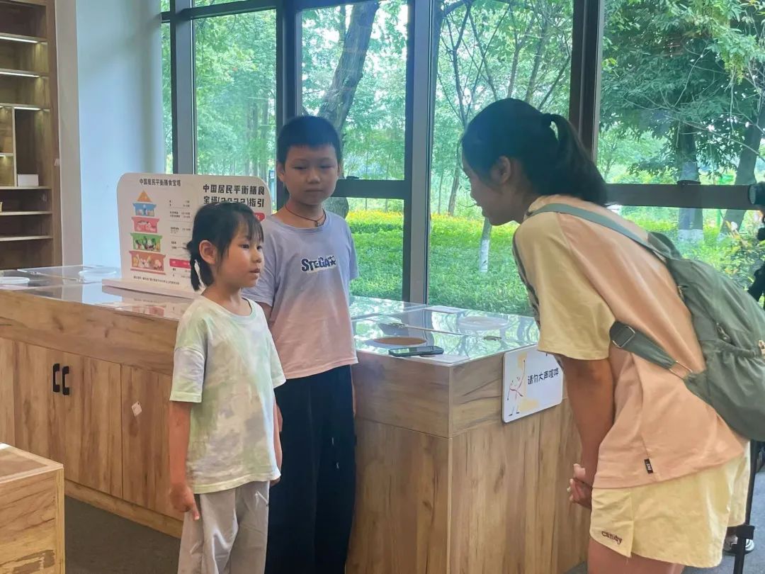 图为团队成员正在采访前来参观的两位小朋友。当问到参观后的感受时,小朋友表示以后要珍惜每一颗粮食,从生活中的小事做起,争做“光盘行动”小小小倡导者。
