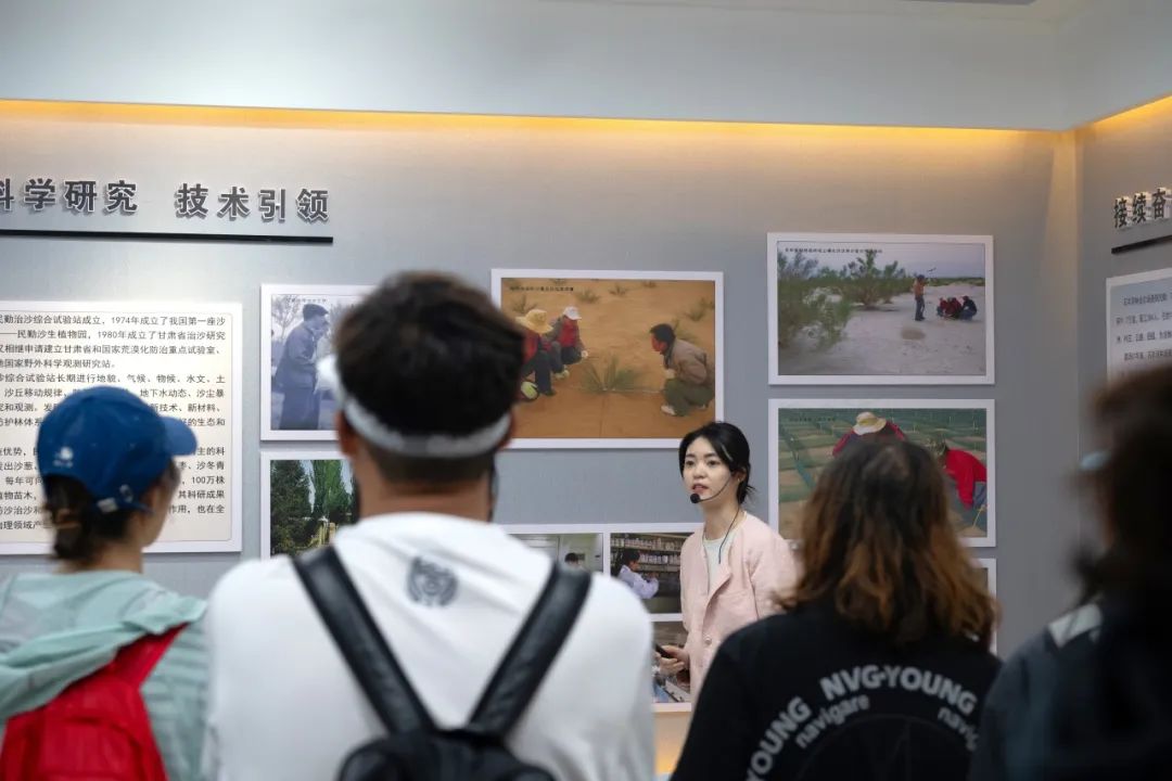 在民勤防沙治沙纪念馆里,团队成员随导游的讲解深入了解、学习了民勤县的地理环境、治沙历史和治沙模范,正如它的地名,这里勤劳人民的治沙精神和坚守信念感人肺腑、深入人心。