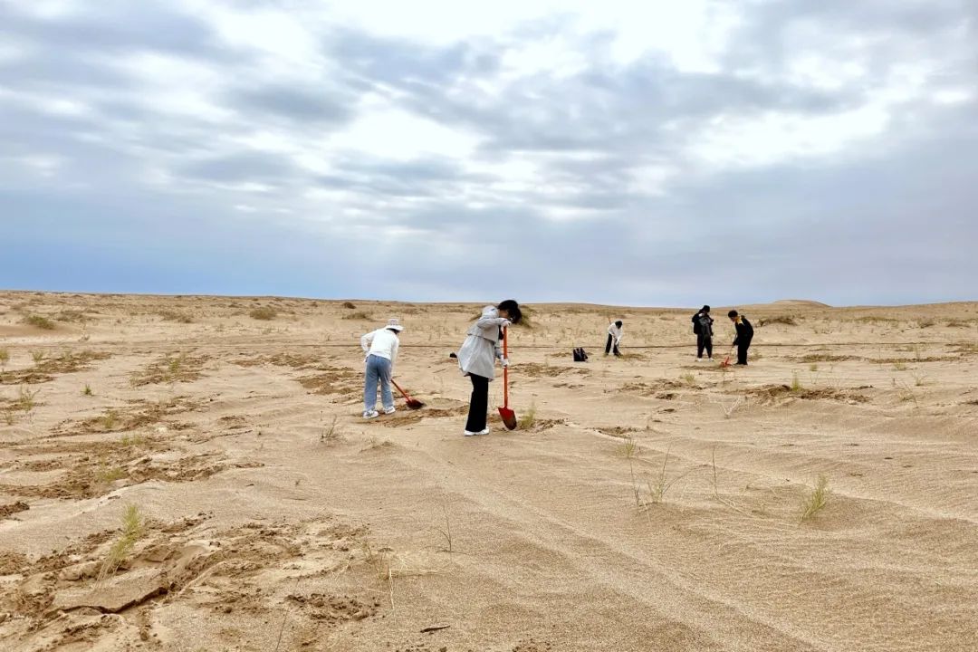 “十个雨天”暑期社会实践团来到甘肃省民勤县绿洲,在当地公益治沙人仲麟的指导下,队员们手握铁锹加入民勤种树治沙事业、走访当地村民聆听老一辈的治沙故事、学习杯苗实验感受治沙技术、参观民勤防沙治沙纪念馆了解治沙历史。在劳动中,在人群中,深刻体悟民勤县勤劳人民的治沙精神,在这片蕴藏生机的大漠里挥洒青春汗水,为民勤绿进沙退贡献青春力量。