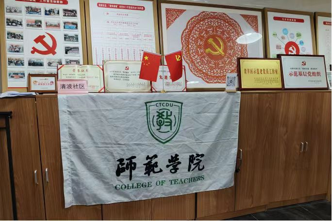 师范学院的旗帜与清波社区的荣誉证书交相辉映,即使对合作的认同与肯定,这张照片定格了双方携手共进的美好瞬间,也是对活动做大做优的美好愿景。