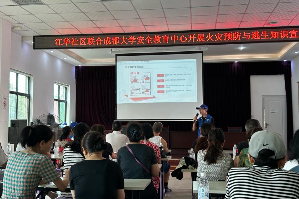 安全教育中心小组成员走近江华社区、友谊社区、天兴社区联合社区党群服务中心的工作人员做了火灾预防与逃生知识宣讲,以提高人们的防火意识,减少火灾的发生。在宣讲活动中,增加互动环节,如问答、演示等,能够提高居民的参与感和记忆力。通过实际操作灭火器、了解逃生路线等环节,使居民们不仅仅是听听讲座,而是真正参与到学习中,加深对消防知识的理解。