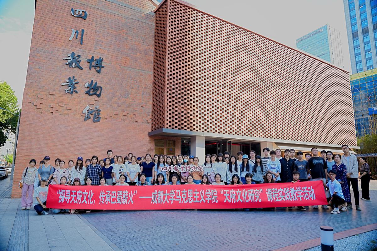 教学实践基地——四川报业博物馆(以下简称“报博馆”),开展了本学期“天府文化研究”与“中国共产党思想政治教育史”两门专业课程的联合实践教学活动。此次活动旨在将思政教育专业知识从课本理论转化为实地探索的鲜活体验,在实践中实现专业知识落地,进而强化同学们对天府文化传播、思想政治教育载体功能的深度认知。