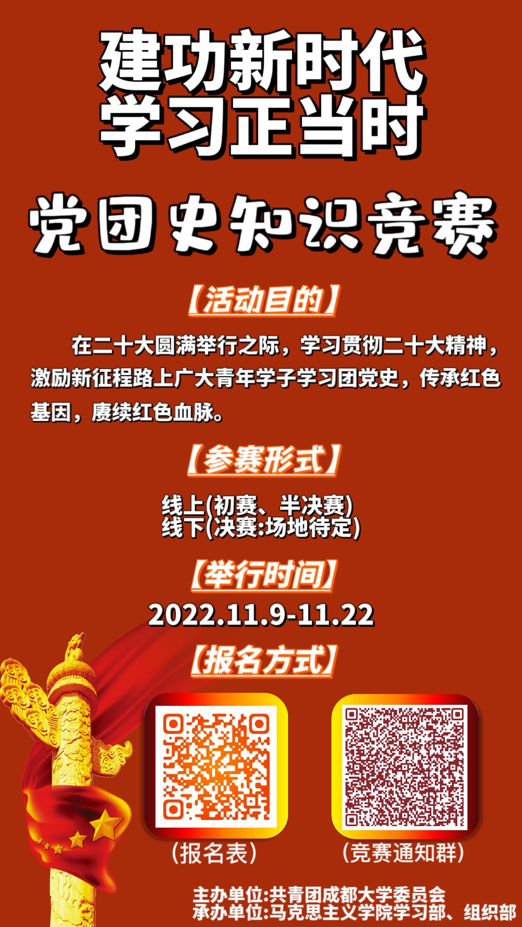 “建功新时代,学习正当时”党团史知识竞赛活动,促进同学们在竞赛中进一步了解中国共产党,了解中国共产主义青年团的发展历程,提高广大青年的思想政治素质;激发同学们对实时政事的关注热情,能够产生自己的见解;为广大团员和入党积极分子提供学习平台,保持自身的先进性;让广大学生明白社会主义建设者和接班人身上肩负的责任与使命,营造人人学习党团史的红色校园氛围,学习红色文化,传承红色精神。