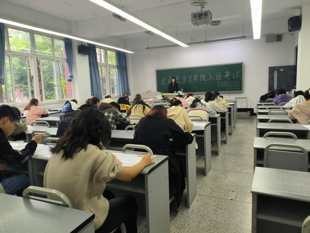 此次考试监考员。入团积极分子们认真复习,为入团考试做准备。