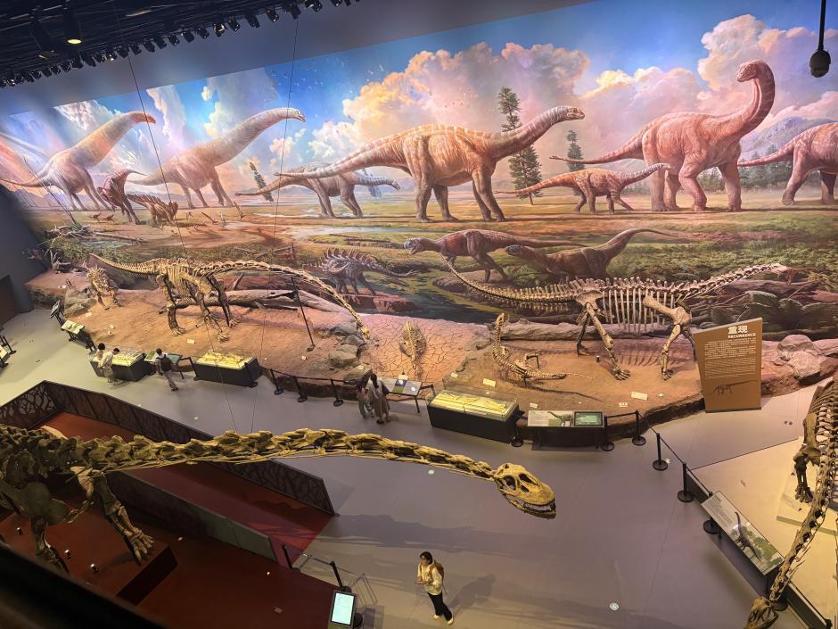 作为西南地区规模最大的自然科学类展馆,成都自然博物馆融合地质、古生物、恐龙等多学科展品,以系统化展陈勾勒地球科学的宏阔图景。在专业讲解员引导下,师生们依次参观恐龙化石与鱼化石展区、地质环境厅、恐龙探险厅等六大常设展厅—亿万年地质变迁的实证标本、沉浸式互动科普装置,不仅让同学们直观感知自然历史的厚重,更通过“生物演化与生态保护”主题展陈,深刻理解人与自然和谐共生的科学内涵,激发对自然的敬畏之心与探索热情。
