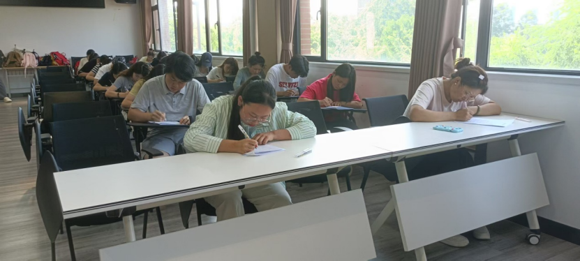 考试开始前,梁老师宣读了考场纪律,强调了考试注意事项。随后,由学院组织部人员分发试卷,考试正式开始。整场考试在学院组织部的全程监督下规范有序地进行。监考人员认真履职,确保考试公平公正,学员们专注作答,考场秩序井然,考风严谨。