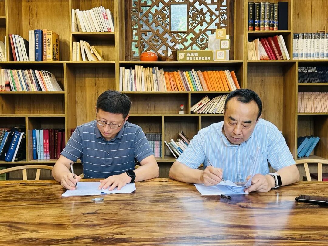 揭牌仪式后,双方围绕“深化校馆合作、赋能思政教育”召开座谈会,明确将进一步挖掘故居文化内涵、发挥校馆距离优势,推动文化资源与思政教学深度融合。屈陆院长与贺杰馆长现场签订基地建设合作协议,为后续长效合作奠定坚实基础。