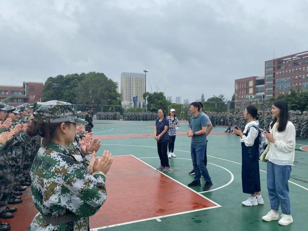 9月18日上午,学院院长屈陆、副院长邱晓霞、班主任王鹏云、两位班助以及学长学姐代表一同前往军训训练场地慰问正在认真操练的新生。