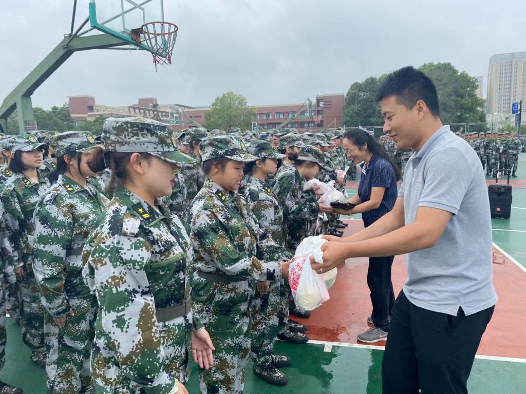 随后,屈院长、邱院长以及班主任王鹏云一同为新生及教官发放中秋慰问礼品。“中秋礼包”被分发到每位同学手中,训练场上气氛热烈,同学们脸上洋溢着幸福的笑容,军训的疲惫也随之而去。