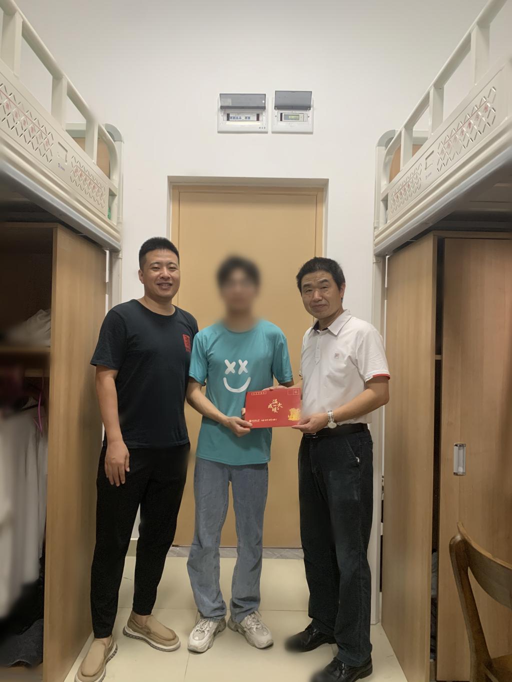 党委书记安鸿带领辅导员深入学生寝室,走访慰问家庭经济困难学生,为学生送上学校的慰问金和学院的关心关怀。
