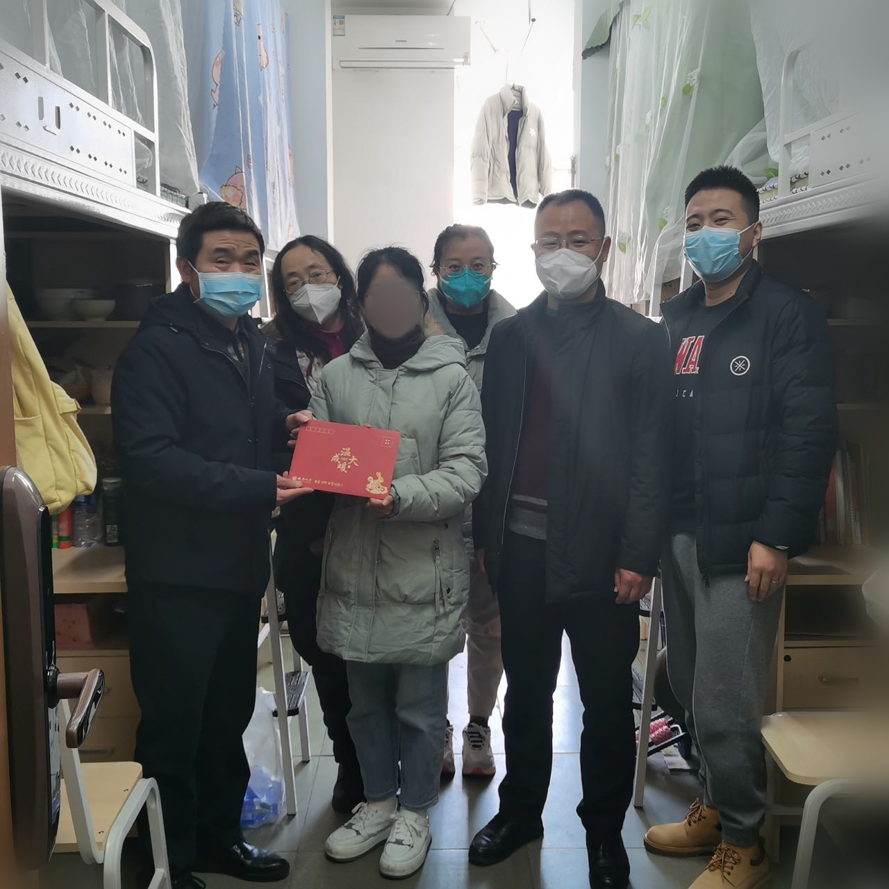 党总支书记安鸿、副院长岳鹏、副院长邱晓霞带领两名辅导员前往学生寝室走访并慰问家庭经济困难留校学生。
