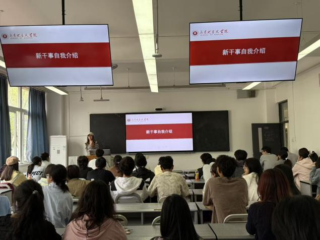 “新面孔”是学生组织的鲜活力量。本次会议特别设置新干事自我介绍环节,各部门由部长带领新干事依次发言。新干事们或分享个人兴趣,或表达对部门工作的期待,在轻松的氛围中互相认识、快速融入,为马院分团委学生会注入了朝气蓬勃的新活力。