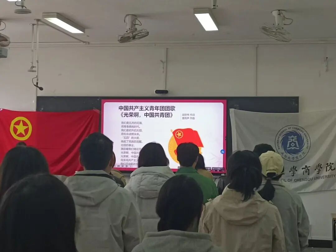 活动伊始,主讲人带领大家齐唱团歌。讲解共青团的性质和使命,简述中国共青团的光荣历史,阐述团在新时代的组织职能和奋斗目标。然后组织小组自由讨论“为什么加入中国共青团”,主讲人加以强调并发表总结,最后进行交流探讨和同学感悟分享。