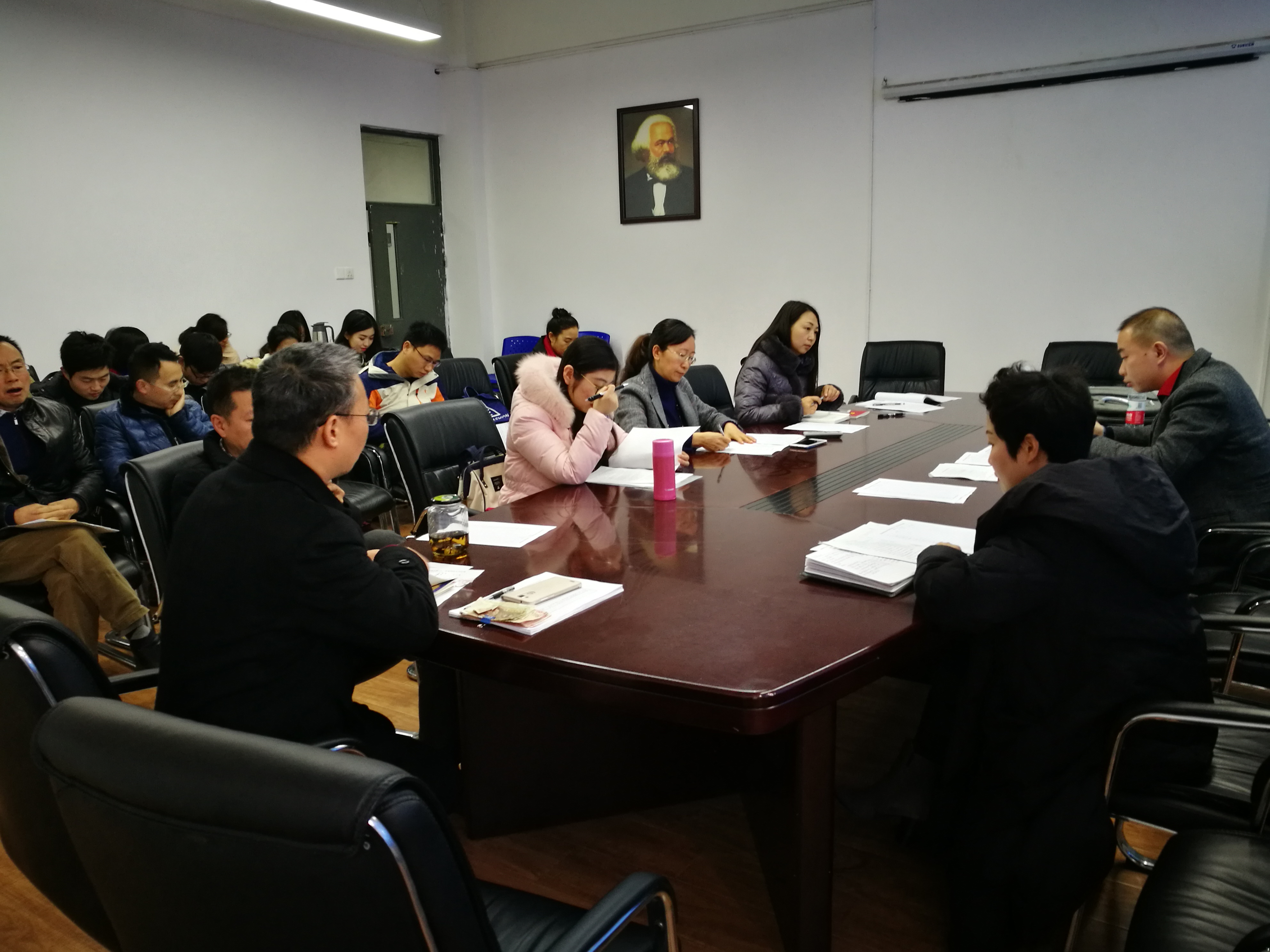 (文/侯幸 图/江志军)2018年1月2日,政治学院党总支思想政治教育教工党支部2017年民主评议党员大会在6224会议室举行。会议党支部书记彭波主持,全体思想政治教育教工党员参加了本次民主评议大会。