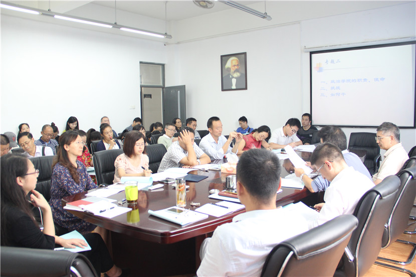8月30日下午,政治学院组织开展了“两学一做”专题二学习教育研讨会,彭时平院长为全体党员做了题为“两学一做”的报告,报告后学院各党支部开展了深入讨论。会议由学院党总支书记安鸿主持。
