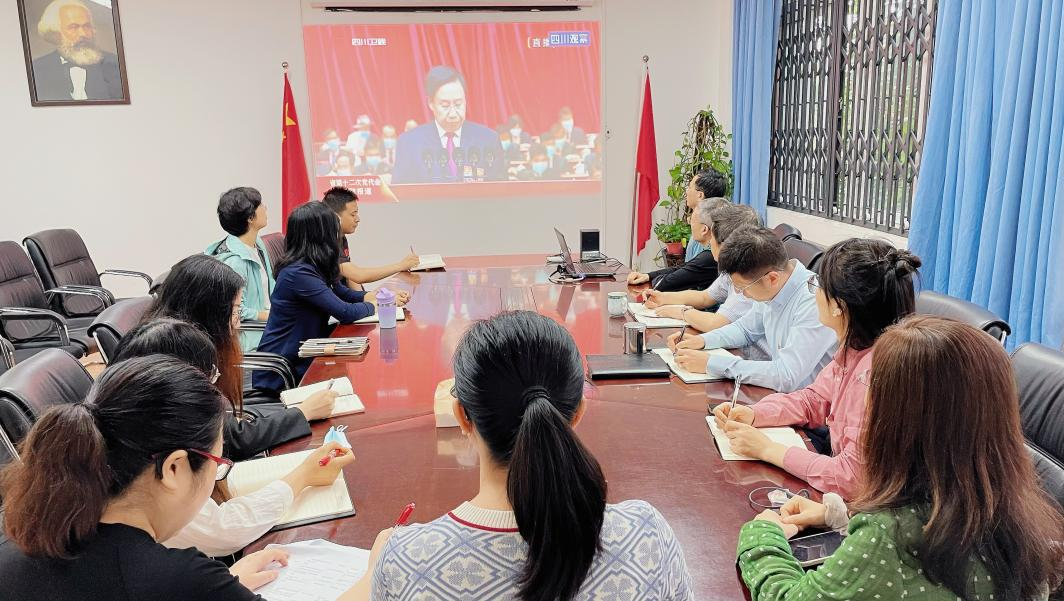 为深入学习贯彻中国共产党四川省第十二次代表大会重要精神, 5月27日上午九时,学院组织全院教职员工通过电视、网络等媒体收听收看了开幕会实况直播并于6224会议室开展教职工政治理论专题学习。
