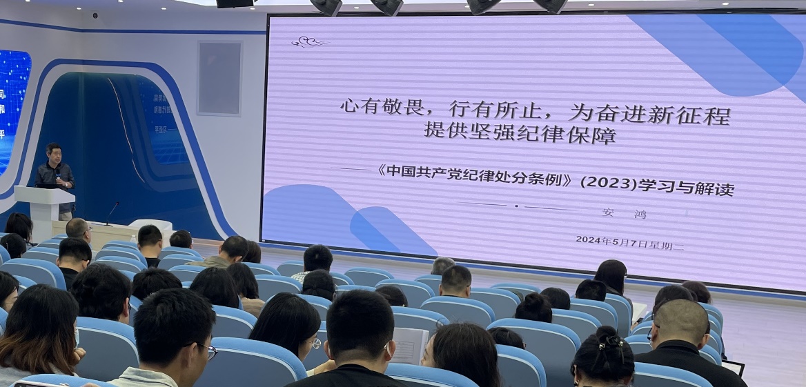 党总支书记安鸿以《心有敬畏,行有所止,为奋进新征程提供坚强纪律保障——〈中国共产党纪律处分条例〉(2023)学习与解读》为题,在3131教室向马院师生讲授党纪学习教育专题党课,院班子成员、全体教职工、学生党员及入党积极分子、发展对象参加了此次专题党课。