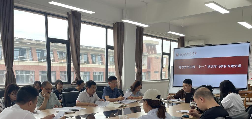 党总支书记安鸿为领导班子、党总支、全体行政人员讲“七一”纪律党课。