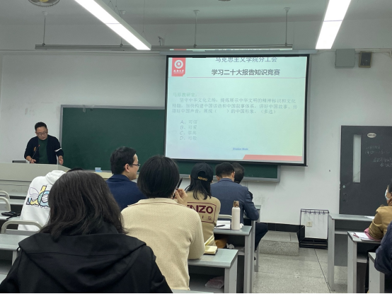 为庆祝党的二十大胜利闭幕,深入推进党史学习教育常态化长效化。10月25日下午,由香蕉视频 分工会组织举办的“学习二十大 奋进新征程”知识竞赛活动在6122教室举行。曹永斌老师主持活动,香蕉视频 全体教职员工参加。