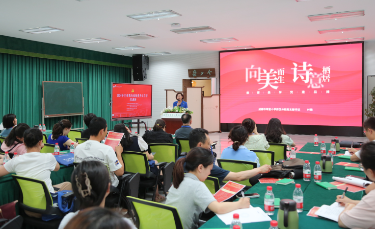 食品与生物工程学院重点实验室教工党支部书记向达兵以《党建与业务相融合,助推教学科研水平提升》为题,分享了所在支部积极探索的行之有效的路径和模式。下午,培训班在成都市草堂小学西区分校开展了实践教学,付锦书记解读了学校是如何围绕“我有一所房子”的核心文化办学理念,深耕《向美而生,诗意栖居》党建品牌,通过专题讲座的方式生动展示了草堂小学西区分校在党建引领学校高质量发展中的“优”“特”做法及成效。