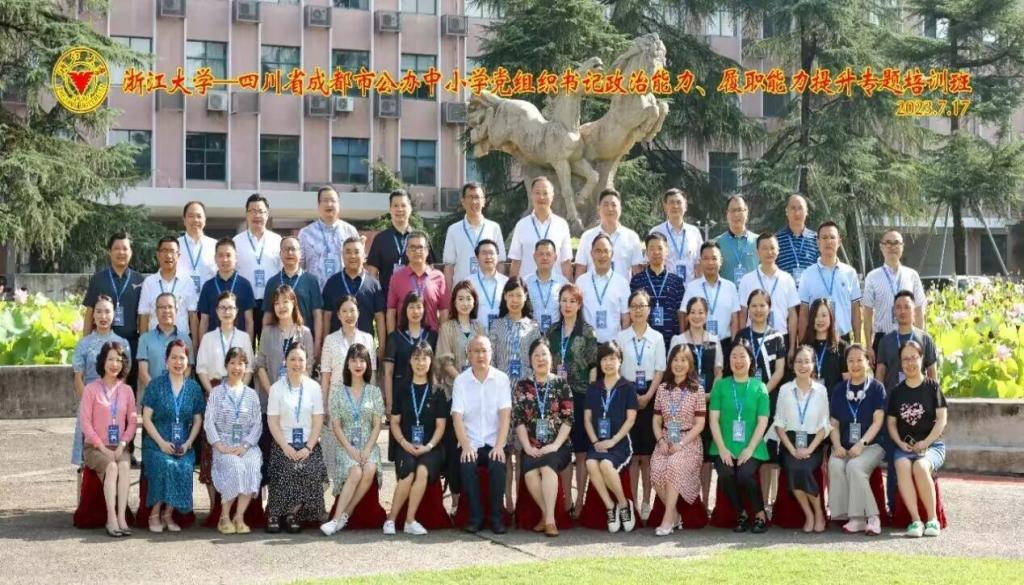 承办的“全市公办中小学党组织书记政治能力和履职能力提升专题培训班”在浙江大学华家池校区举行,来自四川省成都市中小学校党建标准化建设示范校的党组织书记共50人参加了此次培训。