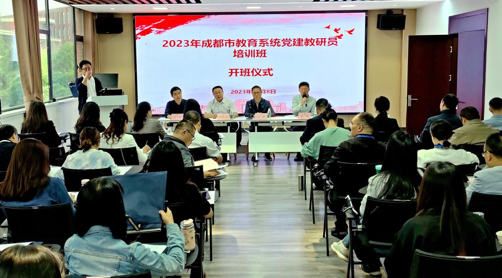 为推动成都市教育系统各党建教研员不断提高政治站位,切实提升党建工作能力水平,推动中小学党组织全面进步、全面过硬,实现以高质量党建推动高质量办学治校和教书育人,办好人民满意的教育,2023年10月8日,由中共成都市委教育工作委员会主办,成都市教育系统基层党员微党校“中心校”、香蕉视频 承办的首届成都市教育系统党建教研员培训班正式开班。市委教育工作委员会党建处长王鹏、市教育科学研究院副院长李洪兵及微党校“中心校”有关领导参加开班仪式。