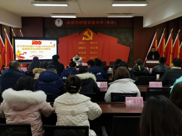 2021年12月31日,成都教育宣讲团刘佳博士赴青羊教育系统开展党的十九届六中全会精神专题宣讲。青羊区教育系统14名预备党员及青羊区教育系统30余名党员代表参加了此次宣讲会,宣讲会会场设在成都市树德实验中学(东区)党员活动中心。