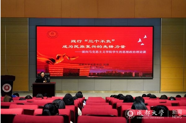 思想政治教育专业90名学生上了一堂题为《践行“三个不负”,成为民族复兴的先锋力量》的思政课。刘强从“百年党史看青年力量”“面向第二个百年奋斗目标的青年责任”“成为实现中华民族伟大复兴的先锋力量”三个方面进行讲授。通过展示百年党史关键节点,把广大中国青年以生命熔铸信仰写就的不朽史诗融入到中国共产党的百年奋斗史学习当中,百年历史进程,青年向上、国家向前,一代又一代中国青年,以青春之我,创青春之国家。面对第二个百年奋斗目标、国内改革发展重任,刘强勉励青年一代要坚持站在历史正确的一边,将国家发展、民族复兴视为自己的人生价值和奋斗方向;面对国际环境动荡和国际思潮涌动,青年一代要不断深化对“中国共产党为什么能、马克思主义为什么行、中国特色社会主义为什么好”的认识,不断增强“四个意识”、坚定“四个自信”、做到“两个维护”,增强新时代青年的志气、底气、骨气。刘强结合自身工作经历和人生感悟,勉励学生们要以党的十九届六中全会精神为指引,以归零心态、奋斗姿态、敬责状态不断解决问题、破解难题,以过硬本领展现作为、不辱使命。他鼓励青年一代要以践行“不负时代、不负韶华、不负党和人民殷切期望”的青年形象作为人生榜样,让青春在不懈奋斗中绽放绚丽之花。