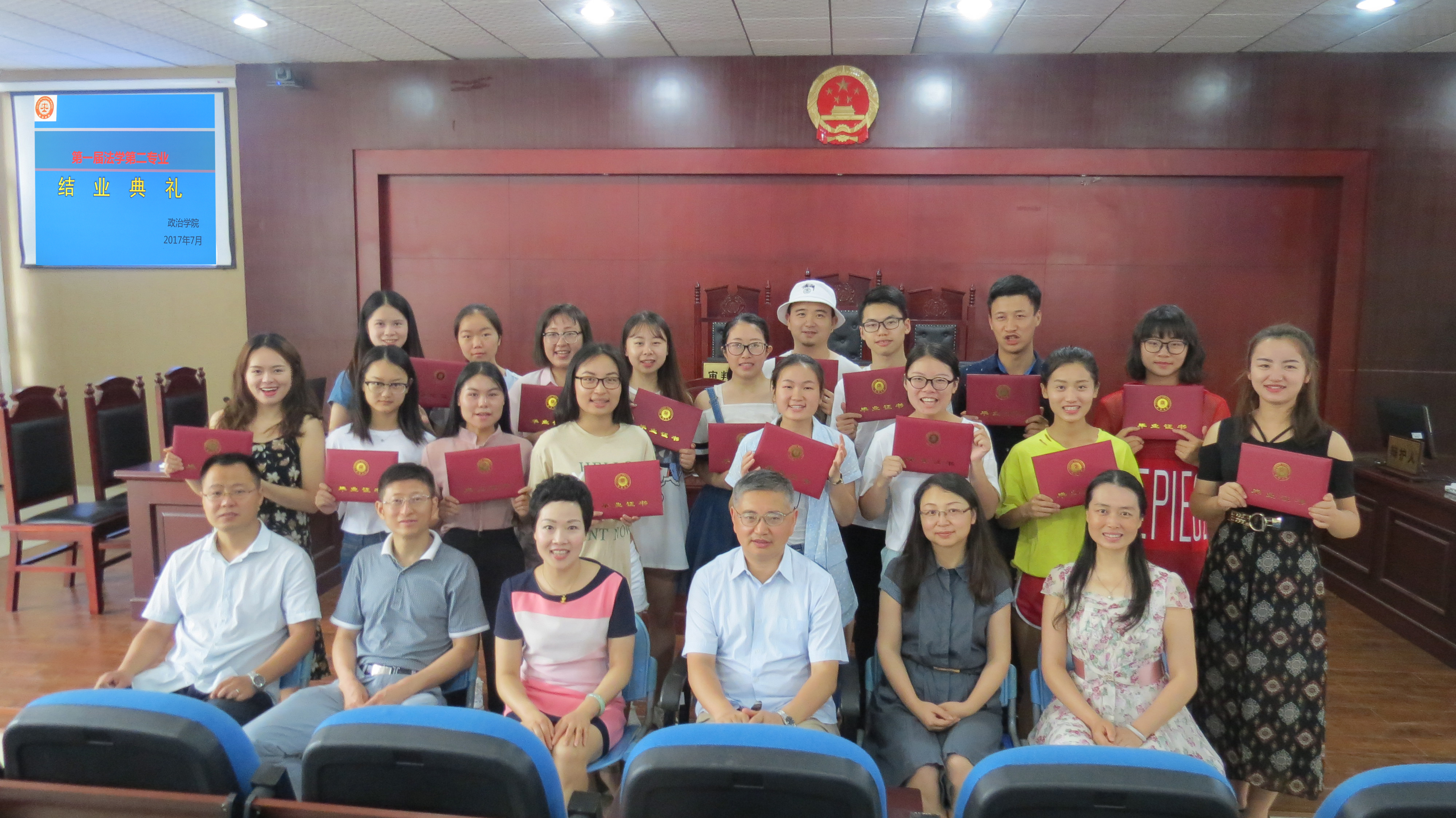 (文/卢俊华 图/卢俊华)政治学院第一届法学第二专业结业典礼于2017年7月4日上午9点30分在数字模拟法庭实验室举行。政治学院全体班子成员、学院专业老师与2014级法学第二专业的23位同学参加了结业典礼,结业典礼由邓陕峡副院长主持。