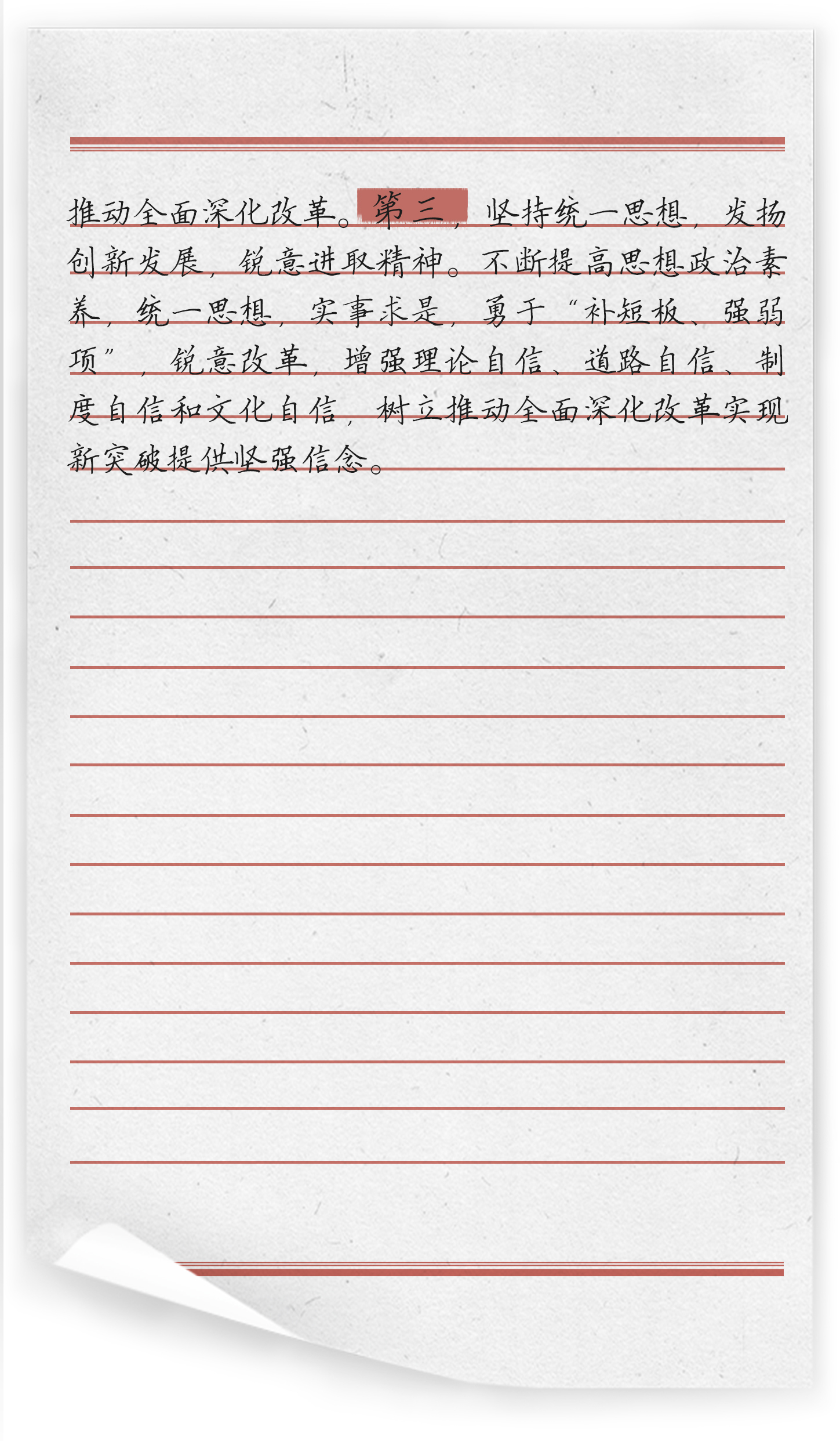 《推动全面深化改革实现新突破》是《习近平谈治国理政》第三卷第六专题,共收录了9篇习近平总书记在2018年2月到2019年11月的部分讲话和讲话要点,是党的十九届三中全会以来,习近平总书记对推进全面深化改革实现新突破的重要论述。围绕“切实把思想统一到党的十九届三中全会精神上”的主题,习近平总书记结合全会提出的指导思想、总体思路和目标任务,基于马克思主义的立场观点和方法,深刻表达了必须坚持和加强党的领导,坚持马克思主义指导地位,以人民为中心推动全面深化改革实现新突破的历史使命,发出时代强音。围绕着改革进入深水区,必须要有担当作为的勇气和决心,面对全面深化改革,提出“集中力量打攻坚战”,扎实推进改革的重要指示。深刻总结了四十年改革开放的宝贵经验,提出了改革开放成功的9个“必须坚持”,在加强党的领导和建设、满足人民的美好生活向往、坚持马克思主义理论和社会主义道路、增强综合国力、加强党的建设等方面总结经验,是党和人民的宝贵精神财富。