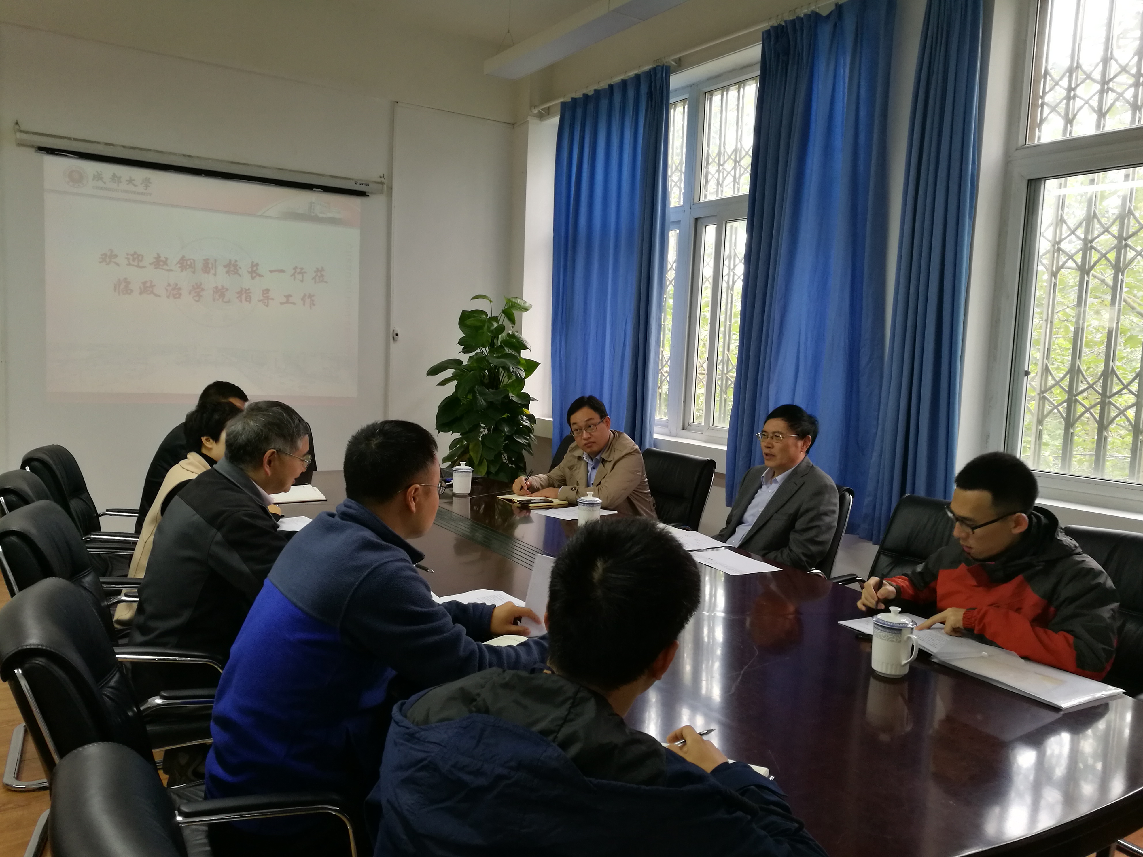 2017年10月26日上午,学校副校长赵钢带队到政治学院调研,学校科研处相关负责人陪同,政治学院领导班子成员和青年博士教师代表参加。