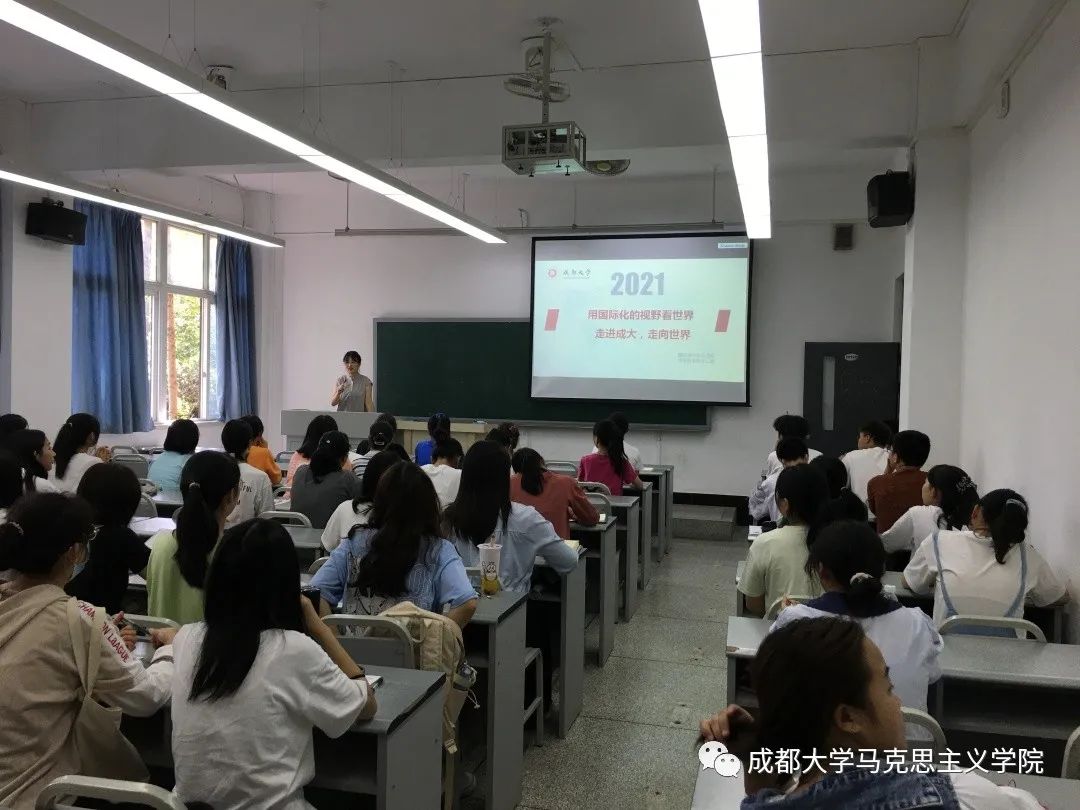 9月10日下午,国际合作与交流处老师在6122教室为2021级新生开展国际合作项目宣讲。老师围绕“大学教育国际化”这一主题,剖析了处于时代变局下的大学生如何规划自己的学习生涯、如何提升自己的眼界与格局。其中,老师重点说明了拥有全球竞争力的人才在日后发展中的优势。同时,老师还向大家展示了近年来学校对大学教育国际化的关注,例如:建立斯特灵学院、城市+大学的措施和相关培养项目等。