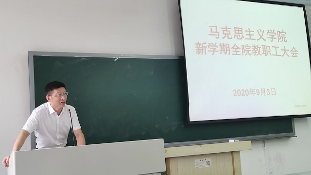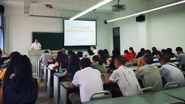 建设工作、学院十四五规划的编制、启动制度“废改立”工作、硕士点申报工作、学科建设、科研与社会服务、人才引进、成都市大中小学党建与思政教育研究中心成立仪式暨2020年研讨会等,是一个充实的暑期,很辛苦,也圆满完成相关工作。随后,他安排部署了本学期的工作。他强调,本学期学院将全力推进马克思主义一级学科硕士点申报工作,加大人才引进力度,以及内部管理制度改革等。提出,老师们要以提高教学质量为中心,加强学习,更新理念,注重教师团队建设,做强科研,打造一支高水平队伍,使个人价值实现与学校发展紧密结合在一起。