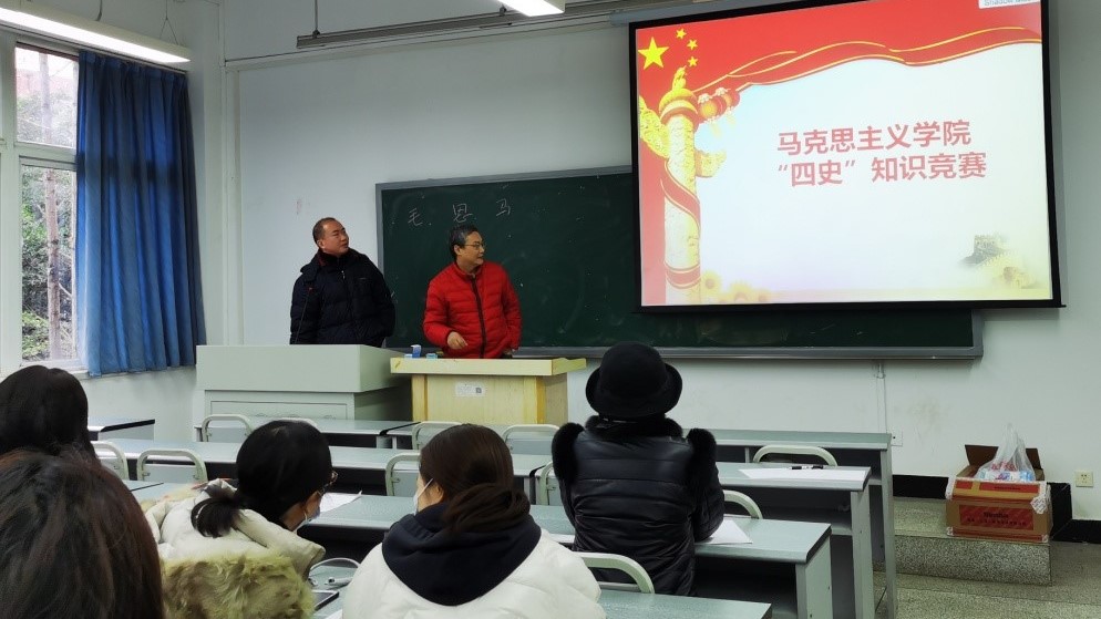 2020年12月15日下午,学院的党员老师在6122教室开展“四史”知识竞赛,学院的民主人士老师也一同参与。老师们分成了三组展开竞赛。中国近代史纲要教研室主任彭波老师主持比赛,学院工会主席肖良配合进行比赛成绩的统计。随着问题的发布,大家积极竞答、气氛活跃、竞争激烈。老师们都发挥出专业优势,胸有成竹,对答如流。