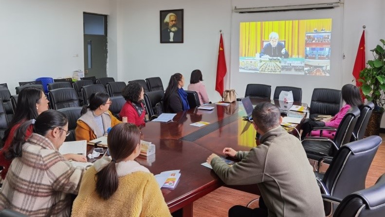 思想道德修养与法律基础党支部成员及教研室教师在学院6224会议室收看学习中央宣讲团成员、教育部党组书记、部长陈宝生同志作的“党的十九届五中全会精神”宣讲报告视频。