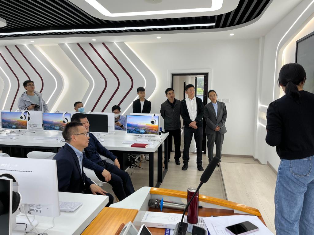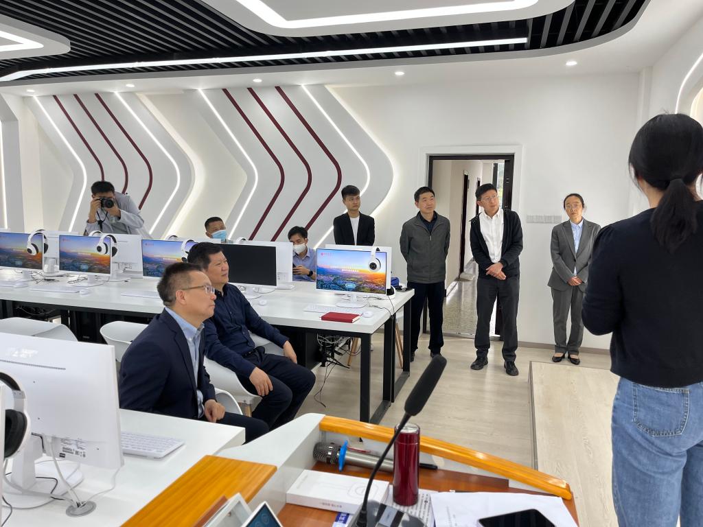 院长屈陆、书记安鸿、教学副院长邱晓霞陪同下参观了学院新建的思政理论课虚拟仿真实验室。
