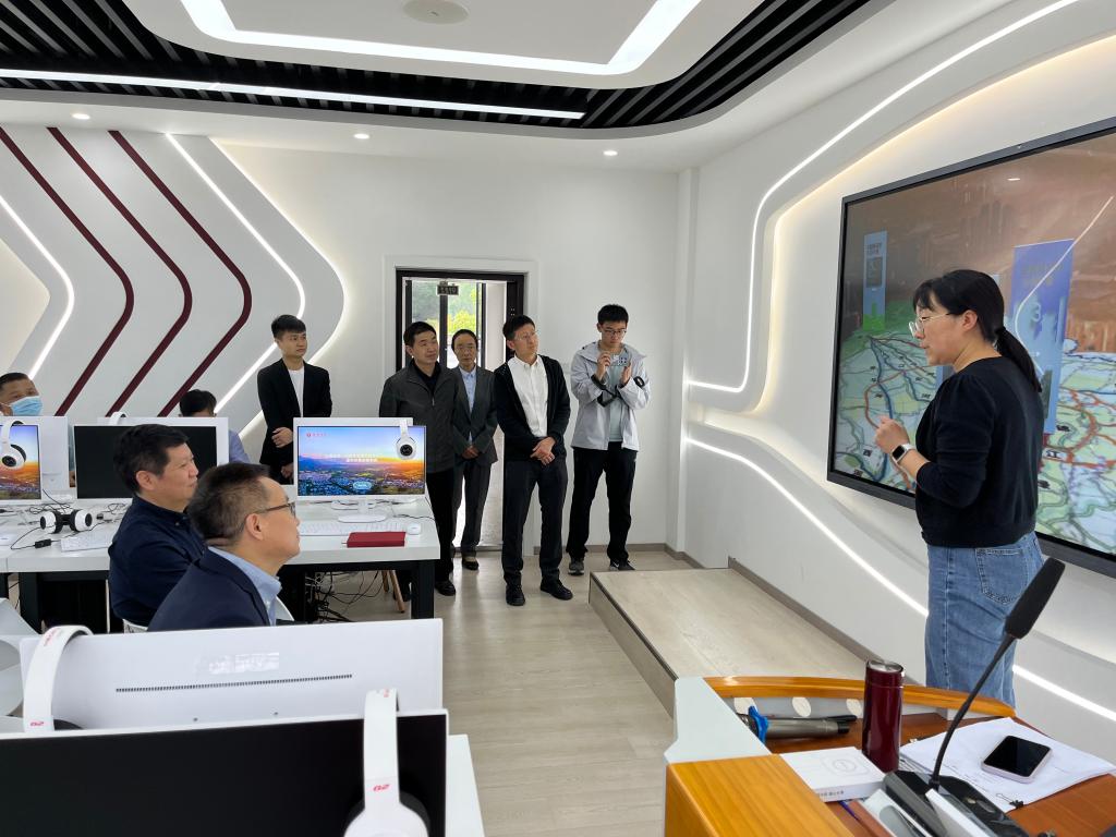 王清远校长仔细聆听了“毛泽东思想和中国特色社会主义理论体系概论”教研室主任侯幸博士对《公园城市——习近平生态文明思想的成都实践》虚拟仿真课程的详细讲解,并在实验室体验了《公园城市——习近平生态文明思想的成都实践》的沉浸式学习。