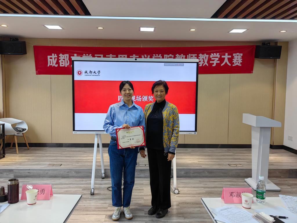 最后,根据专家评委们的打分,院长屈陆教授当场公布了的决赛结果:荣获本次教学比赛决赛一等奖的为吴桐老师,二等奖的获得者为张猷、凃玥两位老师,三等奖的获得者为朱昊、向黎、祝秦、梁爽、杨运筹五位老师,专家评委们分别为他们颁发了荣誉证书。
