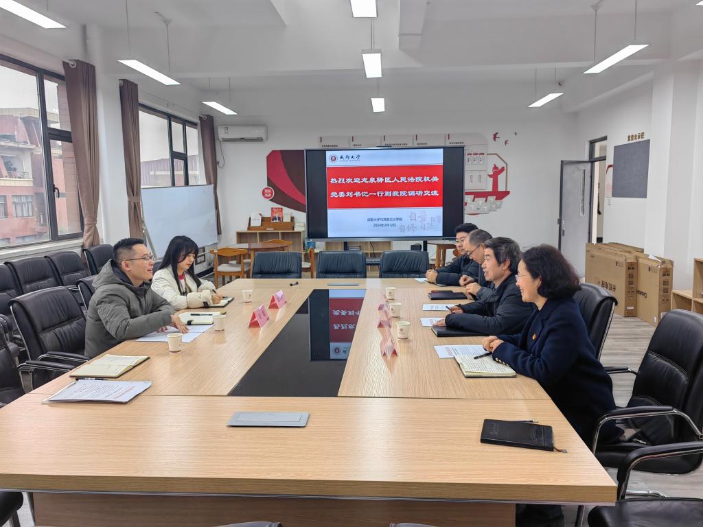 接着刘毅书记表示,龙泉驿区法院非常重视党建工作。现在法院进行了支部书记的调整,所以需要对新任支部书记的能力进行培训,希望学院予以支持。同时法院还要把党建工作中的经验进行总结,所以希望与学院进行课题合作。安鸿书记、周宗旭副书记积极回应了法院的需求,表示希望以后能够在党员培训、课题研究、示范性案例、学生培养等方面进行全方位的合作。