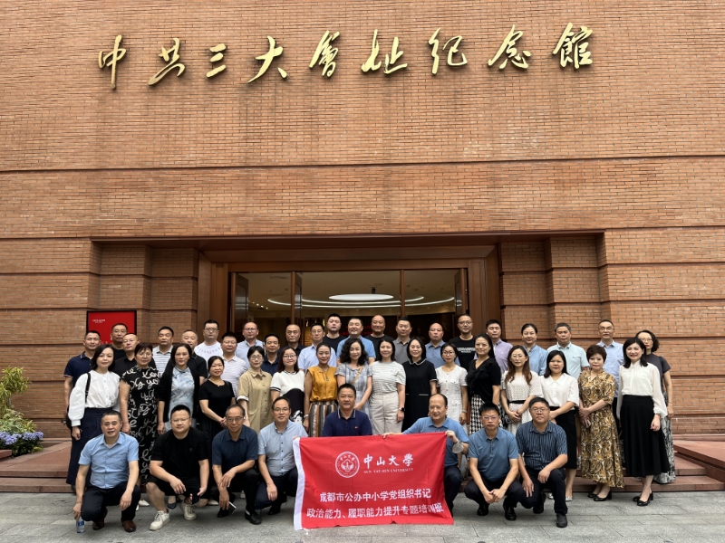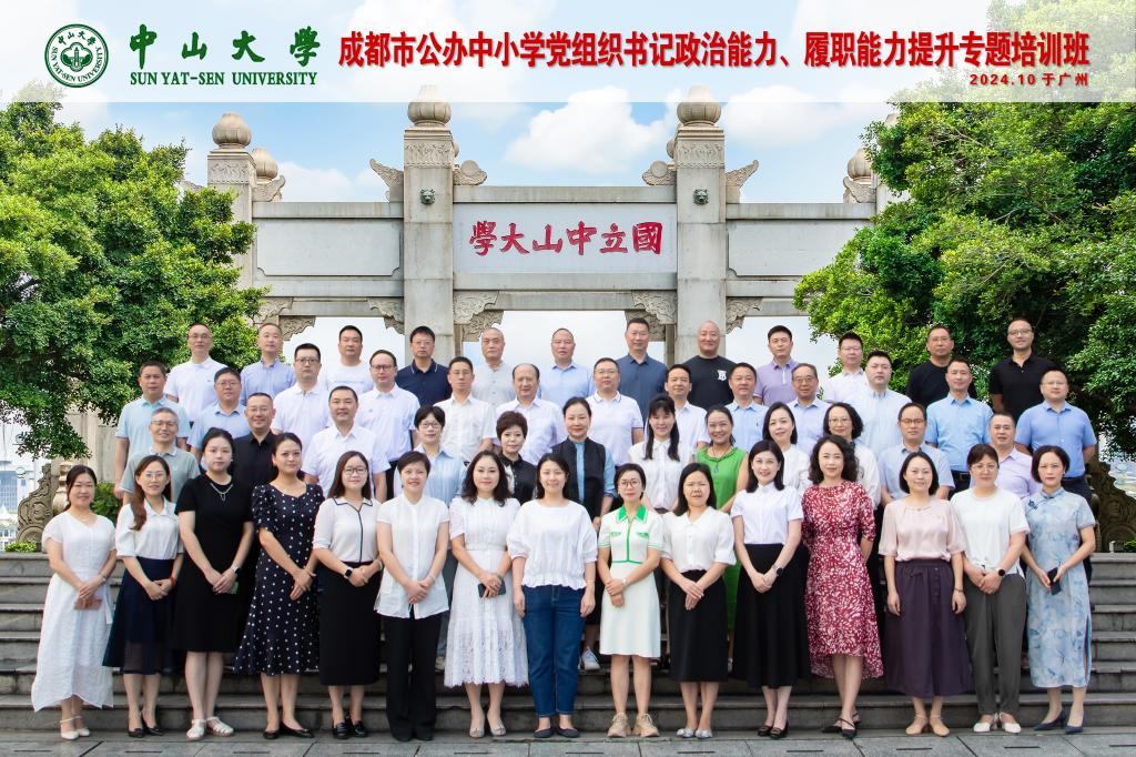 承办的成都市公办中小学党组织书记政治能力和履职能力提升专题培训在中山大学开班,来自成都市公办中小学(幼儿园)党组织书记共计50人参加培训。