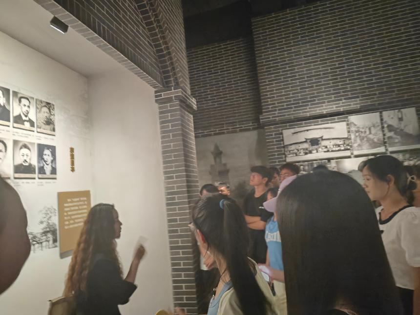 凃玥老师化身讲解员,将《中国近现代史纲要》课堂知识与博物馆展品结合,为同学们上了一堂生动的思政课。通过讲解保路运动文物与抗战时期档案,让学生们感受到成都人在国家危难中的担当。同时将展厅内的近现代人物与学校相结合,讲解了人物和学校之间的渊源,例如我校的校训“自爱、自修、自尊、自强”,就源自伟大的爱国主义者、著名的民主主义革命家、教育家张澜先生的《四勉一戒》。